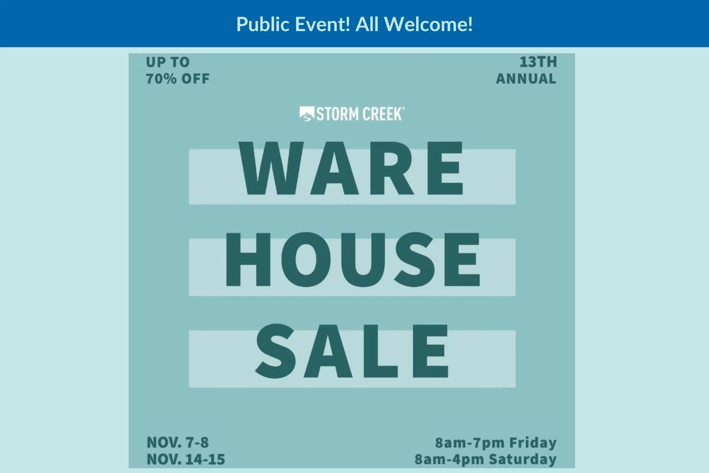 Storm Creek Warehouse Sale fundraiser, weekend #2